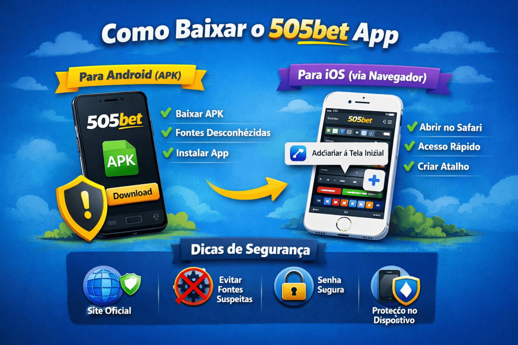 Para usuários Android, o download do aplicativo 505bet geralmente é feito através de um arquivo APK disponível no site oficial da plataforma. Como o app nem sempre está presente na Google Play Store, é necessário acessar o navegador do dispositivo, entrar no site do 505bet e localizar a seção de download do aplicativo. Após baixar o arquivo APK, o sistema pode solicitar a ativação da opção “Fontes desconhecidas” nas configurações do celular para permitir a instalação. Esse processo é comum para apps externos e deve ser feito com atenção.